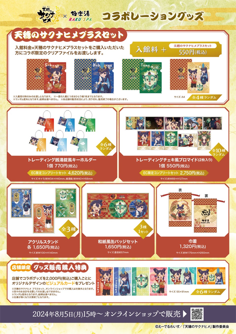 株式会社極楽湯と株式会社GK Marketingの共同主催で、2024年8月5日(月)より極楽湯RAKU SPAグループ7店舗で、TVアニメ「天穂のサクナヒメ」とのコラボキャンペーン“ふろは癒しだ”を開催します。