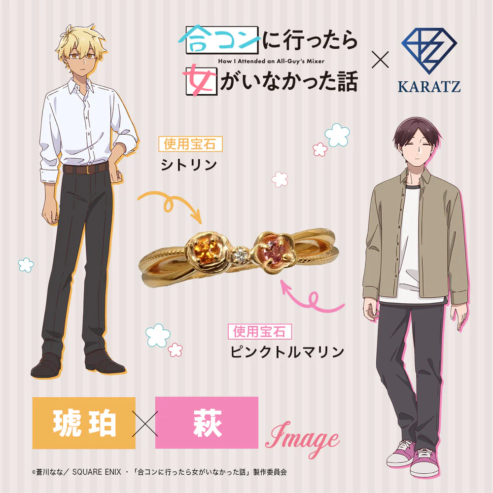 TVアニメ『合コンに行ったら女がいなかった話』×KARATZコラボ ペアイメージリング  琥珀×萩イメージ