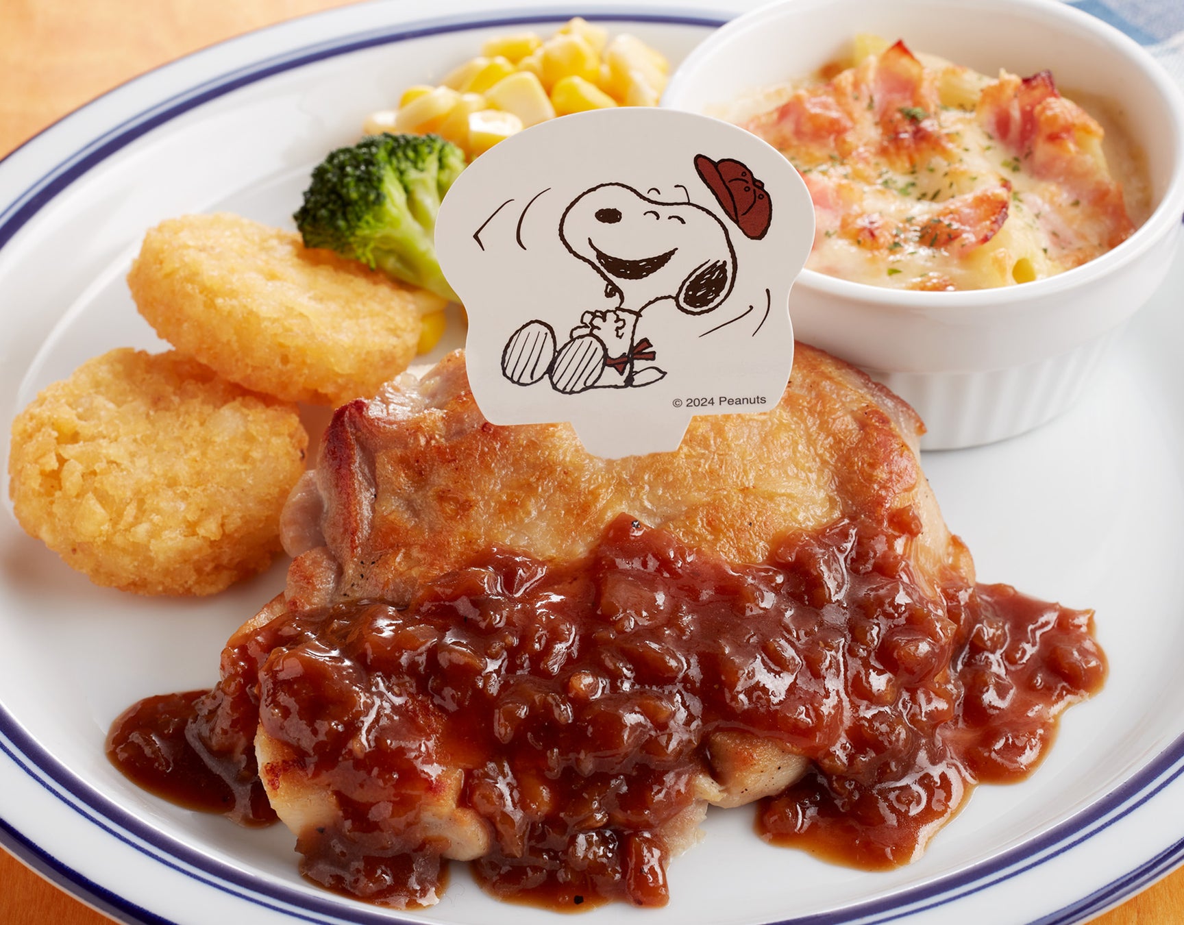 全期間販売メニューでは、スヌーピーの生みの親、チャールズ M. シュルツさんの出身地アメリカ北部をイメージしたボリューム満点の「スヌーピーのアメリカンハンバーグ」や、スヌーピーの一番の親友、ウッドストックの小さくてかわいい姿をイメージしたスイーツなどがラインアップ。
