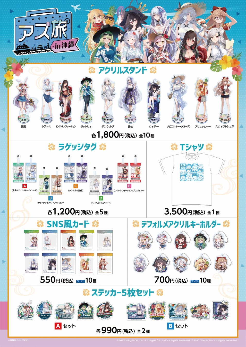 アズールレーン特典付きの入館チケットの販売の他、アズールレーンコラボ水槽の展示やキャラクターグリーティング、館内物販コーナーで「アズ旅 in沖縄」オリジナルグッズの販売やスタンプラリーコーナーの設置も実施いたします。