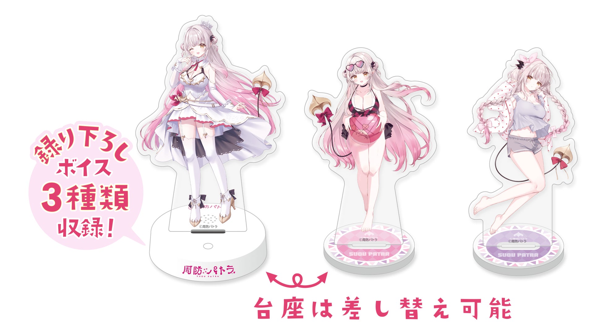 パトラとの添い寝気分を堪能することのできる「添い寝クッション」や、撮り下ろしボイスを使用した「ボイスアクリルスタンドセット」といった特別なアイテムをご用意! その他、イラストを細部まで楽しめる「A3クリアポスター」や定番の「アクリルキーホルダー」といったコレクタブルアイテムも展開いたします。