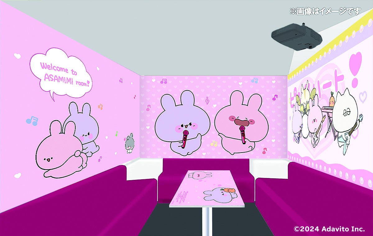 また、ビッグエコー渋谷センター街本店、なんばアムザ店では、オリジナル缶バッジがもらえるコラボメニューの販売と「あさみみちゃんコラボルーム」を実施します。