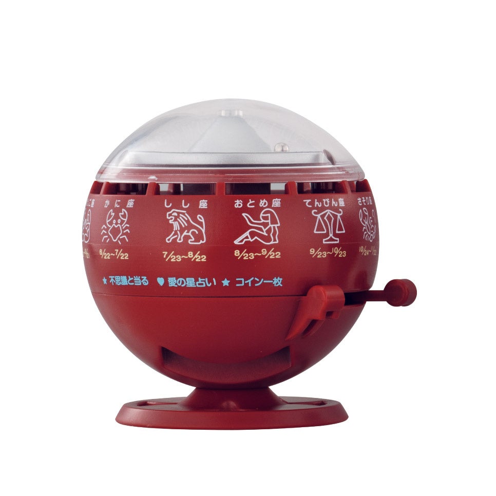 懐かしいアイテム「ルーレット式おみくじ器」がカプセルレスのミニチュアで登場!シークレットは新色でラインアップ!レバーを引くと、上部のルーレットが回転し、小さなおみくじが出てくるギミックを楽しめます。