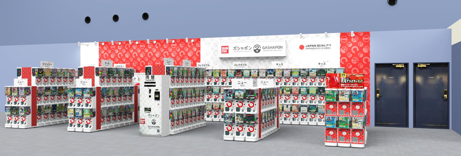 近年カプセルトイ業界では、大型のカプセルトイ専門店が増加し、身近なエンターテインメントとして多くのお客さまに楽しまれています。バンダイのオリジナルのカプセルトイブランドである「ガシャポン」ならではの「ワクワク体験」と「ユニークな商品」をファンの皆さまに向けて直接お届けしたいという思いから、バンダイと大型カプセルトイ専門店の運営ノウハウを持つバンダイナムコアミューズメントが協業で当店舗を出店します。
