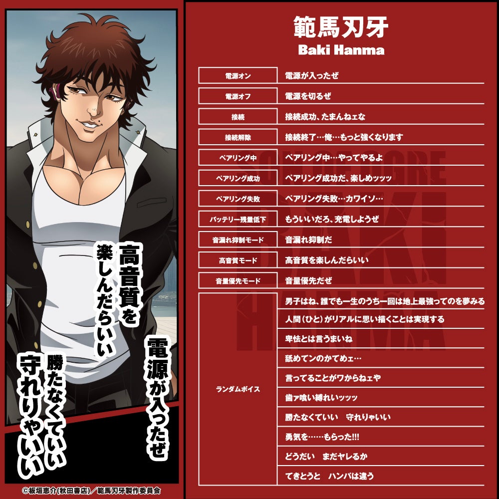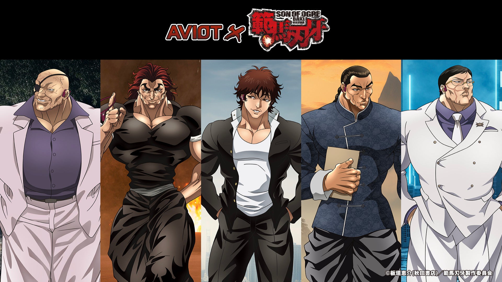 コンシューマーエレクトロニクス製品の製造・販売を行うプレシードジャパン株式会社が運営する「AVIOT」は、骨伝導イヤホン「Openpiece Playful (WB-P1)」をベースモデルとし、「範馬刃牙」「範馬勇次郎」「愚地独歩」「烈海王」「花山薫」の新規描きおろしイラストを使用したスペシャルパッケージと、100種類以上の完全新録ボイスガイダンスを搭載した、アニメ『範馬刃牙』とのコラボモデル、「WB-P1-BKB」と「WB-P1-BKR」の予約を本日2024年7月31日(水)より開始することをお知らせいたします。