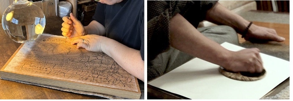 この木版画の彫摺は江戸伝承の古法による純手彫り純手摺りであり、それぞれの技術者は文化財保護第八十三条によって認定された浮世絵木版画彫摺技術保存協会に所属しています。また、この彫師・摺師の木版画制作技術は文化庁保護法に基づき国指定の文化財「重要民族文化財選定保存技術」に選定されています。