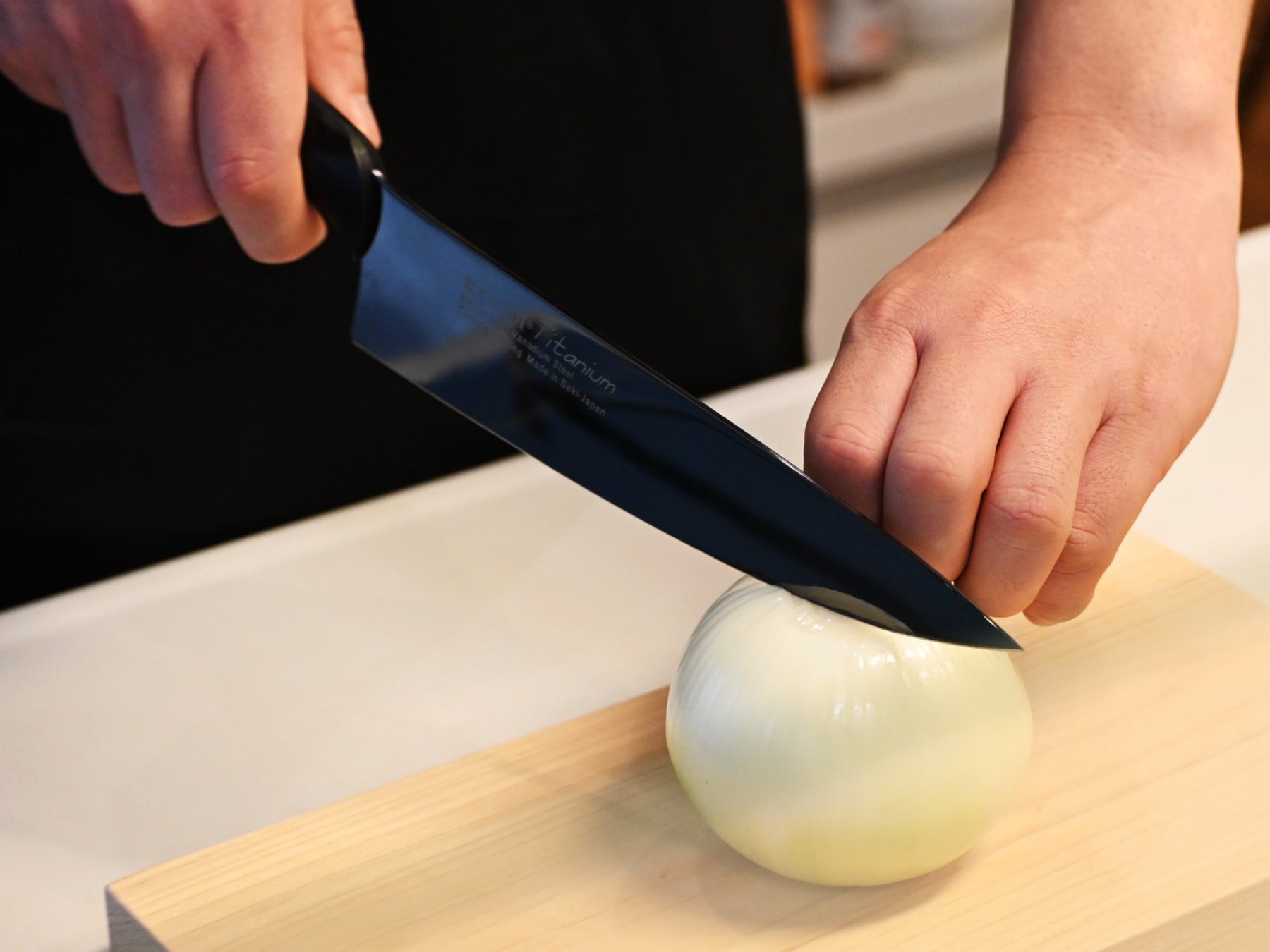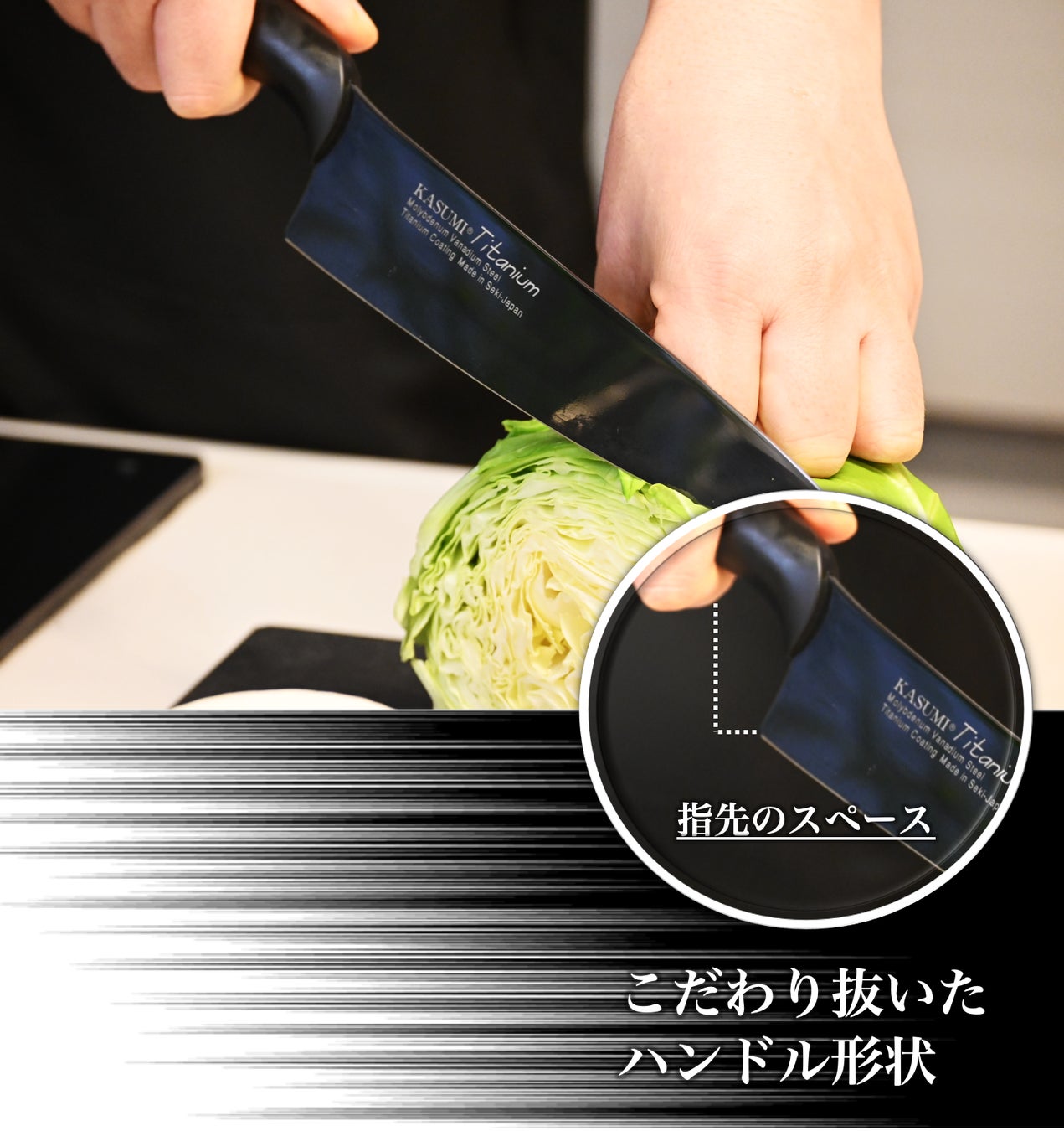 また、耐摩耗性に優れたチタンコーティングが、包丁の寿命を延ばし、錆を防止します。