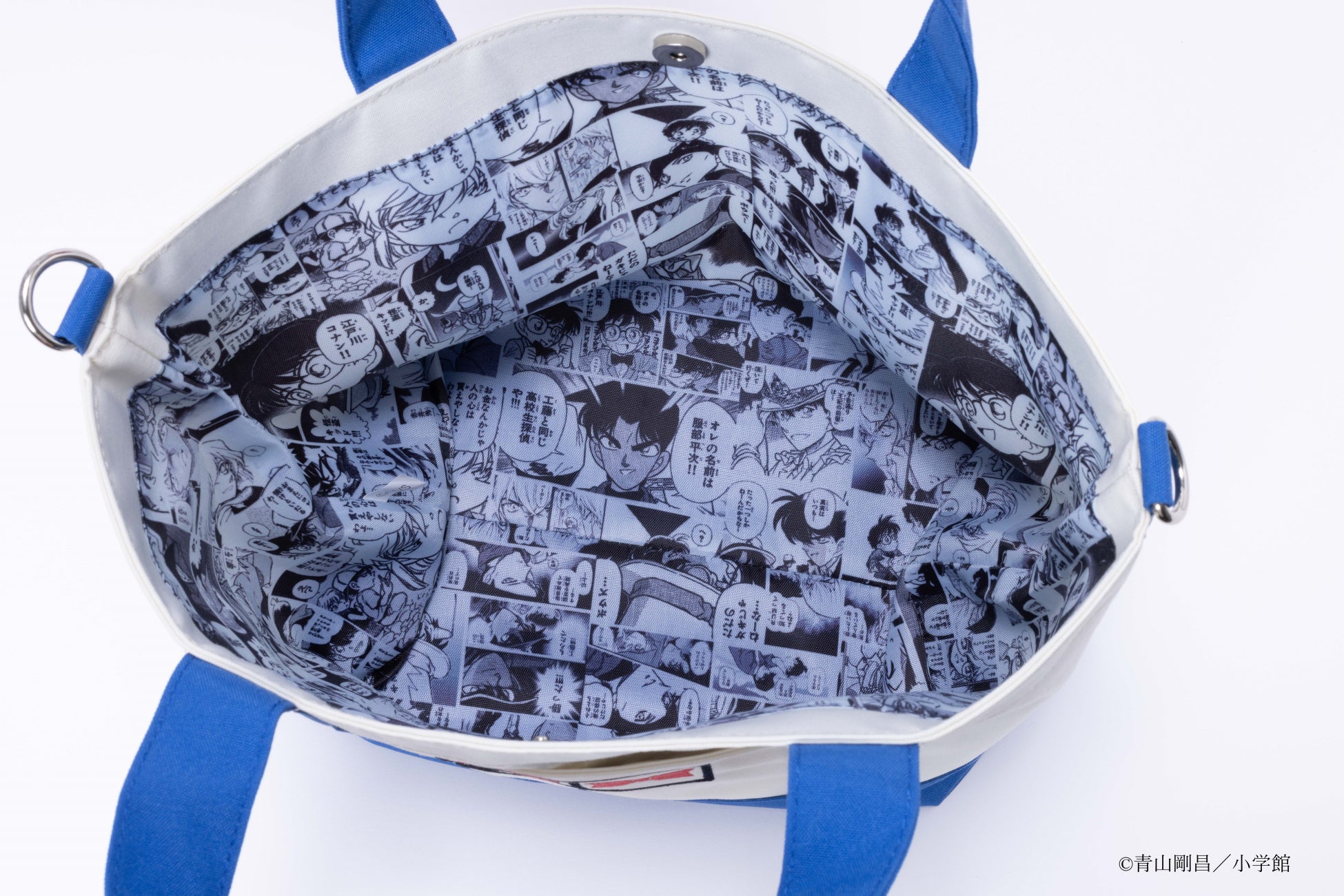 前面には「FILAx名探偵コナン」コラボロゴを刺繍、内面には各キャラクターの印象的な原作コマをデザイン!