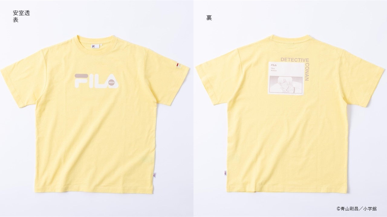 『名探偵コナン』の各キャラクターと、「FILA」のコラボデザインのTシャツです。
