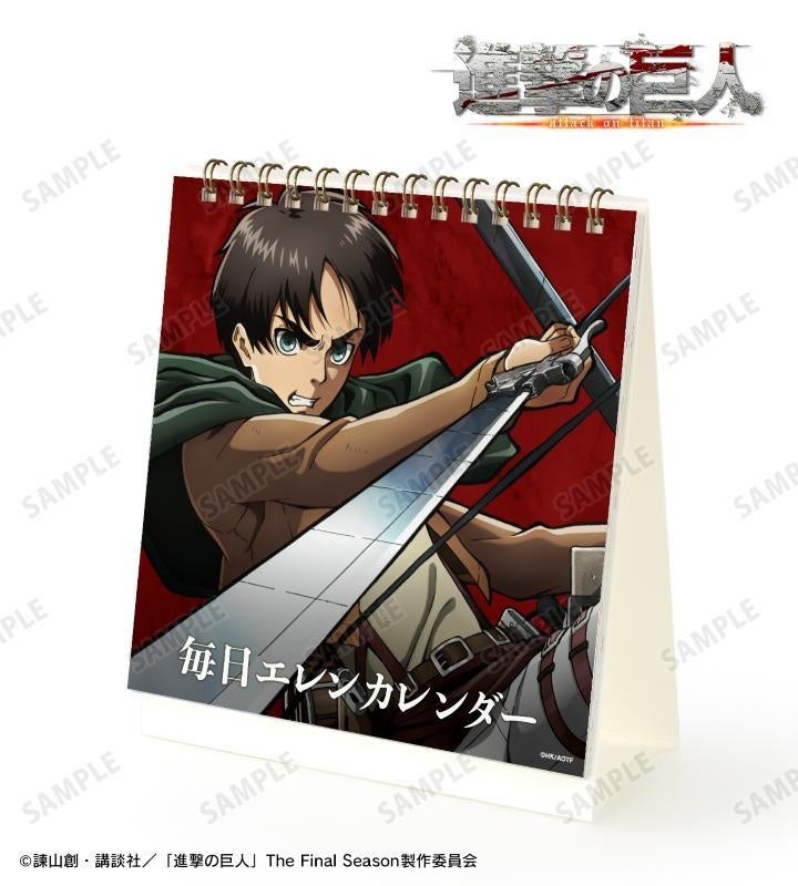 エレン、エルヴィン、リヴァイの場面写を日替わりでお楽しみいただける日めくりカレンダーに仕上げました。