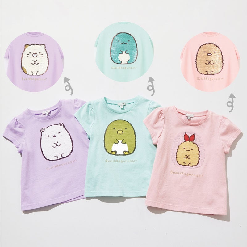 今回は、『すみっコぐらし』デザインの第3弾となる子供服をWEB限定で提案します。昨年好評だったポシェットデザインと、後ろ姿も可愛いバックシャンデザインが半袖になり、アップデートして新登場。また、『any FAM』で人気のミラクルスパンコールでキャラクターが変わるデザインにも『すみっコぐらし』がなかま入りしました。『any FAM』ならではのデザインで、夏にうれしいTシャツ3型の展開です。