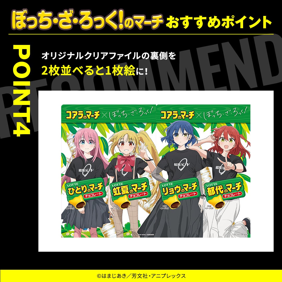 アニメ『ぼっち・ざ・ろっく!』のキャラクターが、発売40周年のチョコ菓子「コアラのマーチ」に大変身し、10種類セット×2パターン(合計20種類)で同時発売します。ロッテオンラインショップにて、期間限定販売となります。