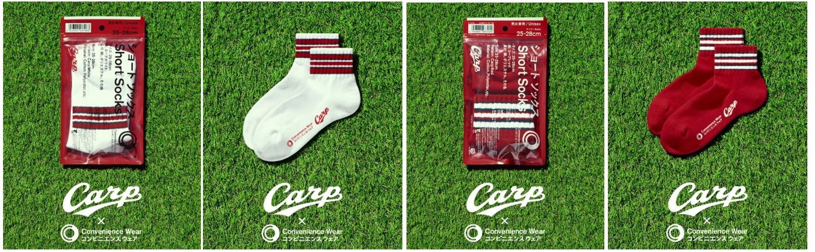 また、「広島東洋カープ」とのコラボレーションアイテムには新たにショートソックスをラインアップに加えて発売いたします。