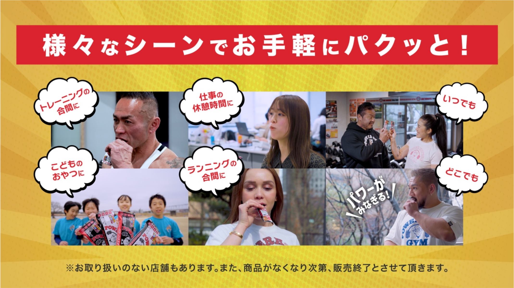 片手でも食べやすいバータイプの形状で、トレーニングの合間や仕事の休憩時間などあらゆるシーンで手軽にパワーチャージができます。