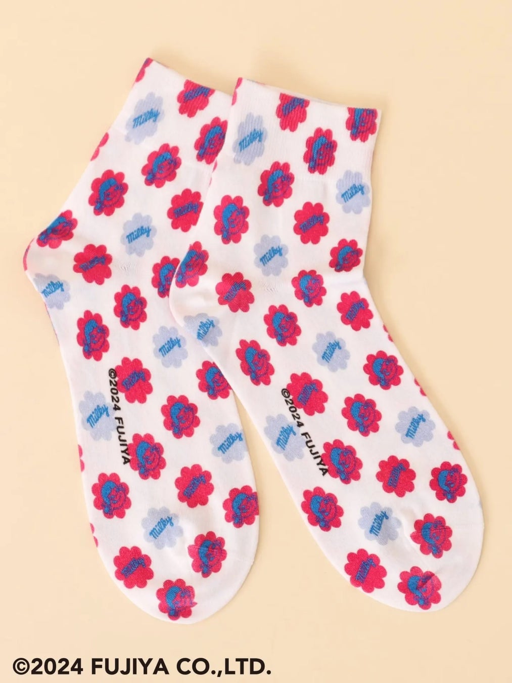 ミルキーの包み紙の柄が全体にプリントされた、インパクト大の一足!こちらはTabio公式オンラインストア限定で販売いたします。