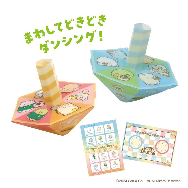 ピンポン対決を楽しめる「たいせん!すみっコピンポン」、外遊びにぴったりな「ゴーゴー!すみっコサッカー」、組み立てて回して遊べる「くるっと♪すみっコダンスこま」の3種類から1種類をお選びいただけます。