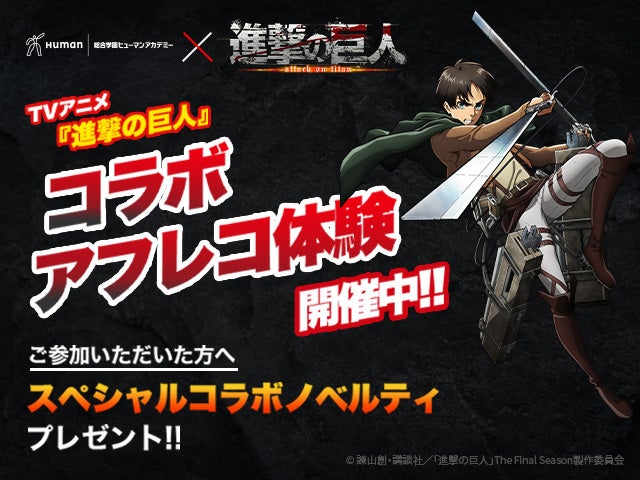 総合学園ヒューマンアカデミーが声優志望者むけのキャンペーンとして、TVアニメ『進撃の巨人』とコラボしたアフレコ体験イベントを開催します。