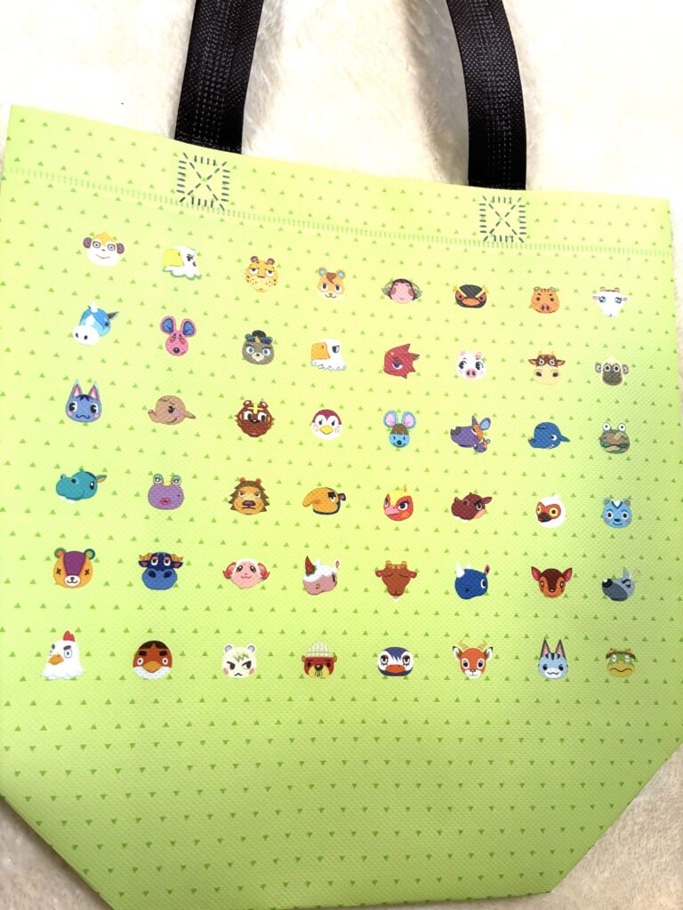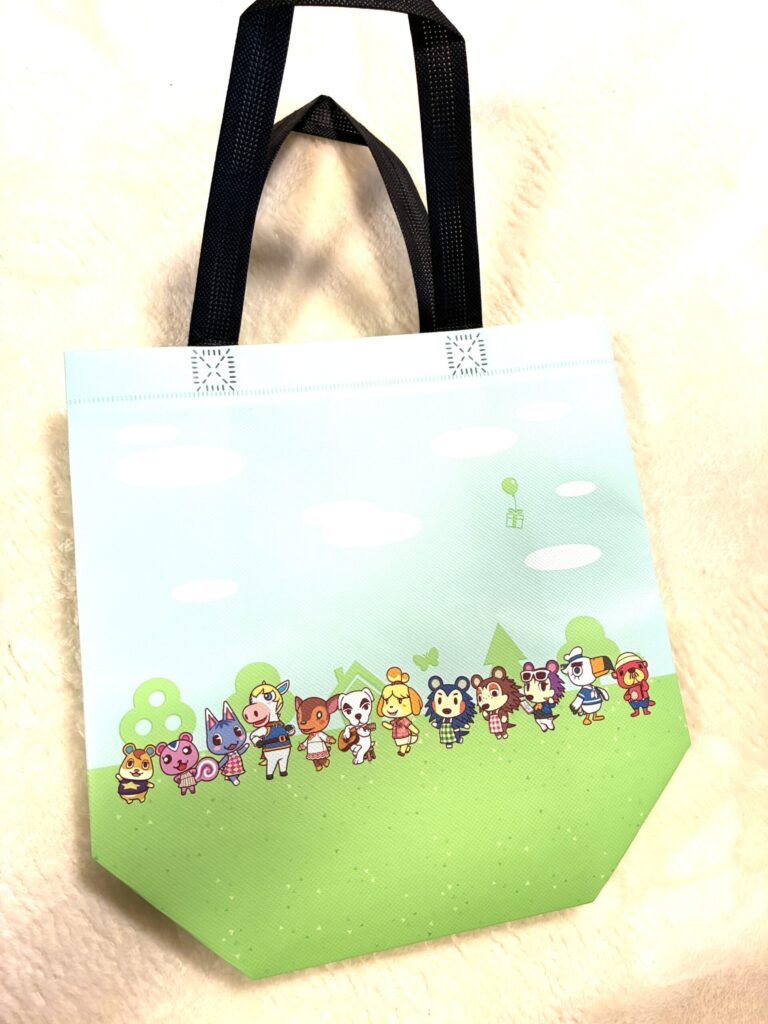 トートバッグのデザイン2種類。どちらも『あつ森』のキャラクターがたくさん描かれています!