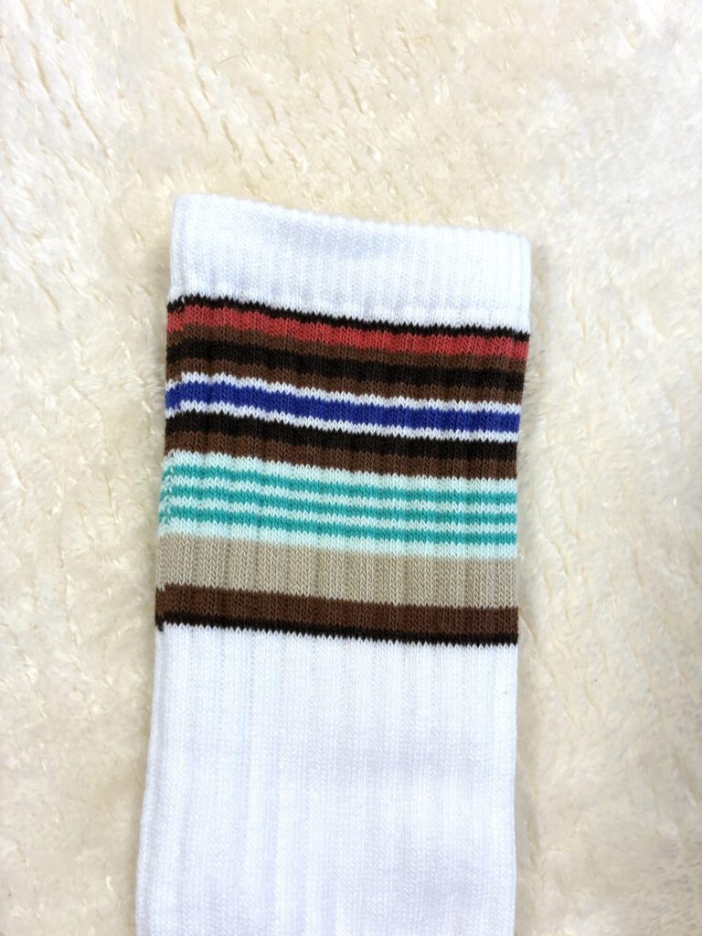 特別デザインのラインソックス。足底にはたぬきちのラバープリント入り!