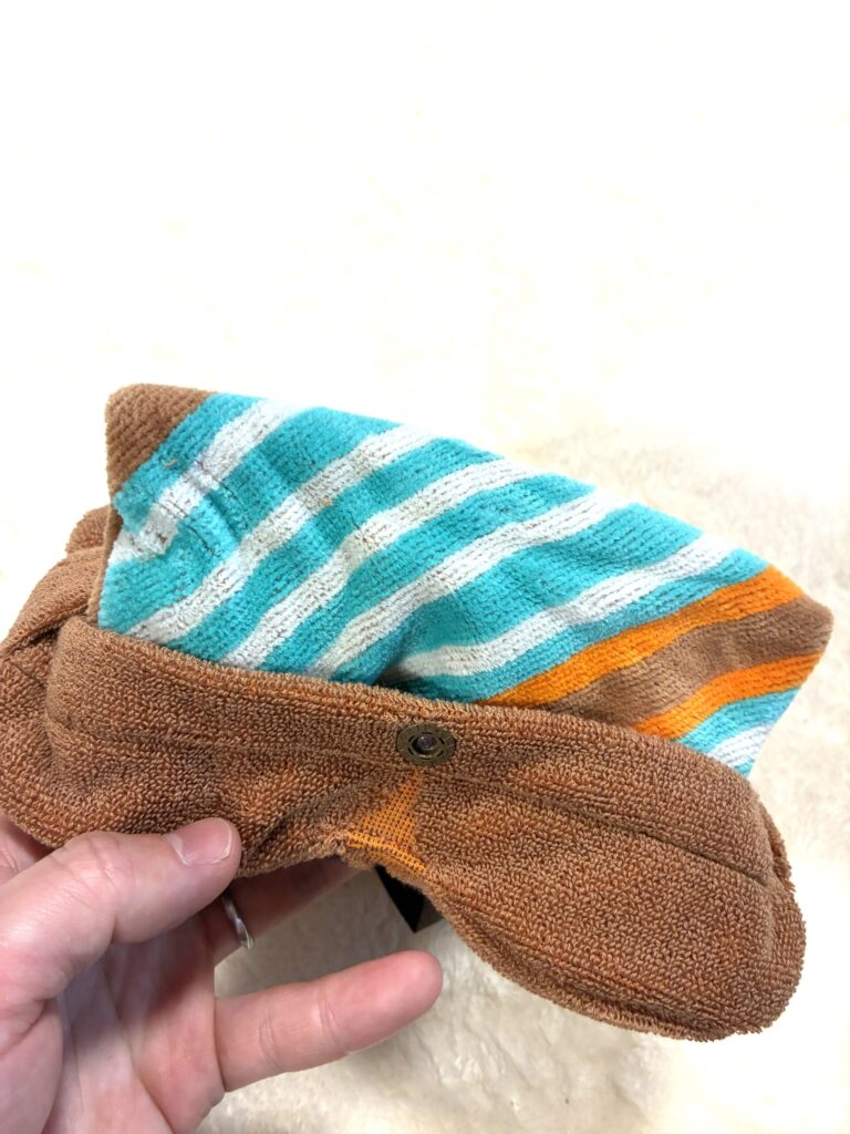 まめきち・つぶきちデザインのポーチの中に、特別デザインのタオルを入れたタオルインポーチ!