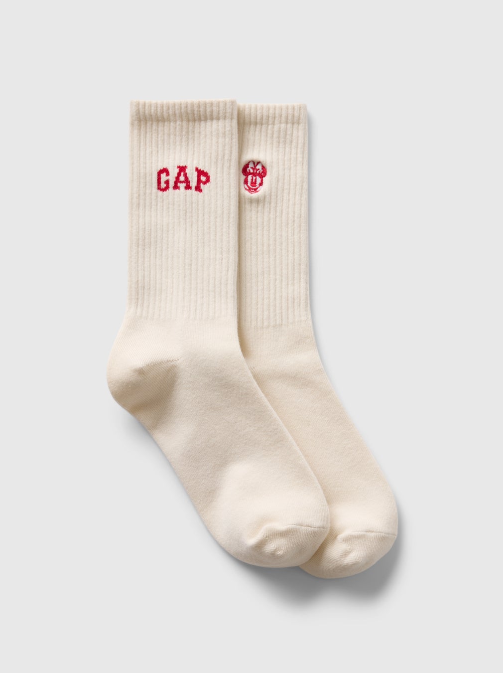 Tシャツもバリテーション豊かに登場。キャラクターの誕生年にちなんだナンバリングが描かれたバーシティスタイル GAPロゴTシャツ、キャラクターたちがカラフルに描かれたグラフィックTシャツ、胸元にミッキー、ミニー、スティッチの刺繍がデザインされたモダン ラグランTシャツが並びます。小物ではコーディネートにさりげないアクセントを差し込めるキャラクターの刺繍入りリブソックスがアダルトで展開します。