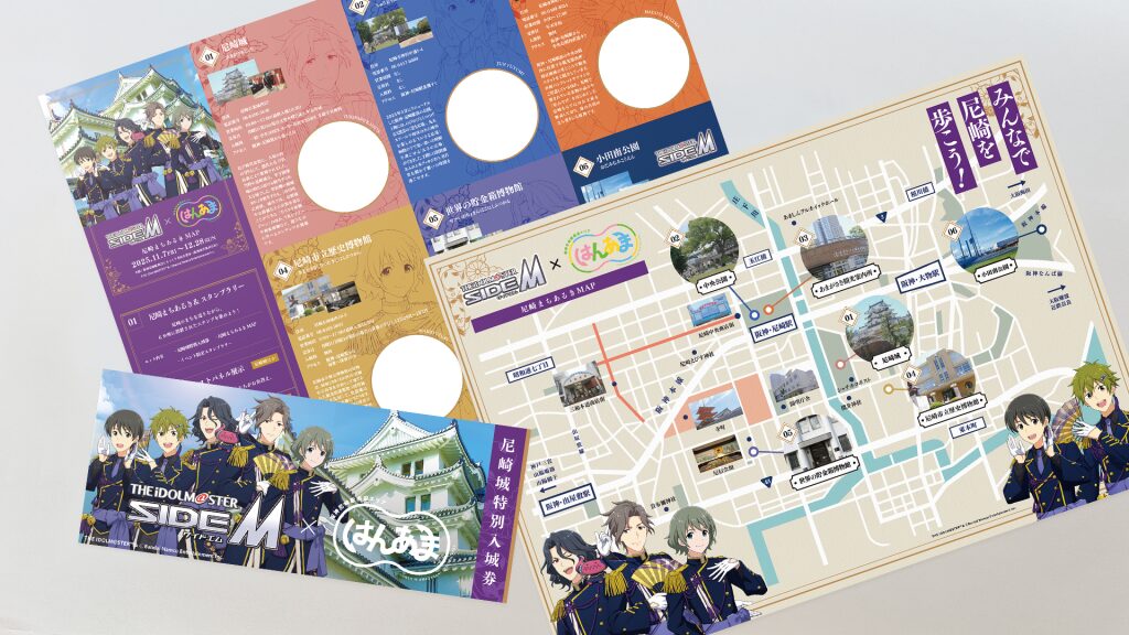 加納さん:描き下ろしイラスト入りの「尼崎まちあるきMAP」を使ったスタンプラリーです。計6カ所に設置されたスタンプを集めてもらう企画で、アイドル達と一緒に尼崎のまちあるきを楽しんでほしいです!また、各所にアイドルの等身大イラストパネルも設置していますので、ぜひ一緒に写真を撮っていただきたいですね。