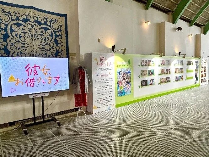 コラボを記念した展示を行います。第1~3期の場面写に加え、第4期「ハワイアンズ編」がより楽しめる展示物を公開します。