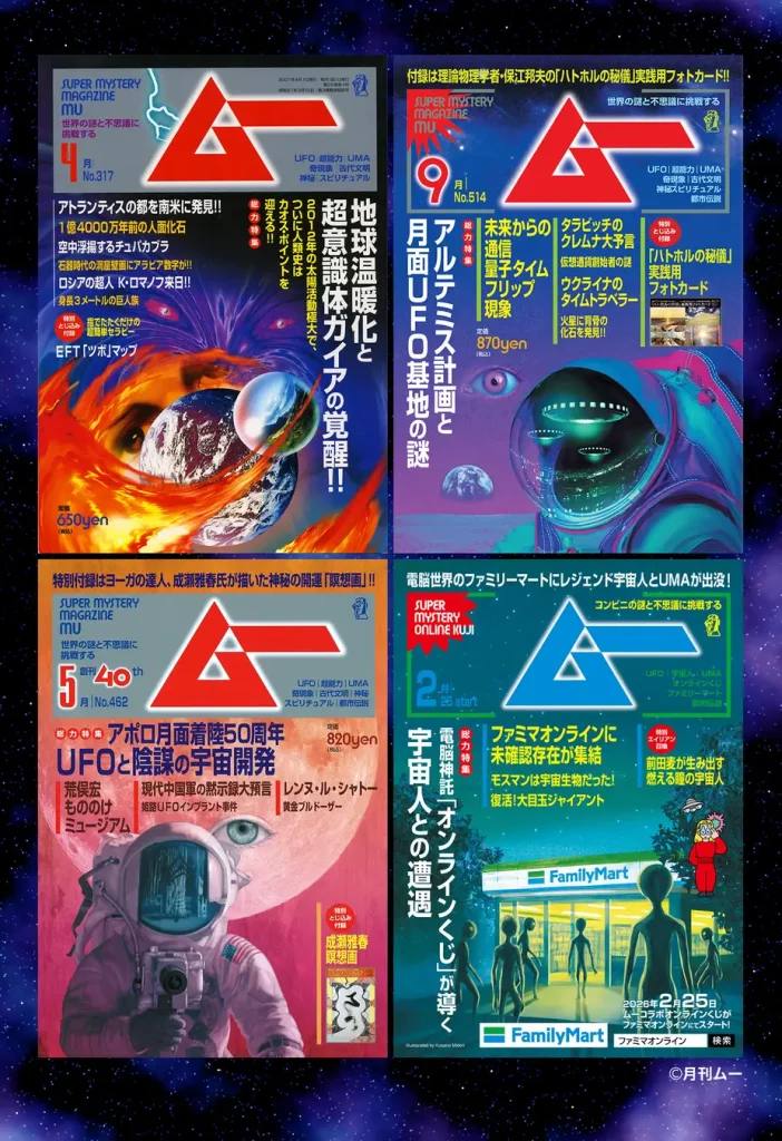 創刊45周年を経てなお、新たな謎を提示し続ける『ムー』。今回のファミリーマートとのコラボは、その歴史への敬意と、誰もが楽しめるポップな遊び心が詰まった企画となっています。オンラインくじから間違い探しまで、日常の中に潜む「不思議」をぜひ体験してください。