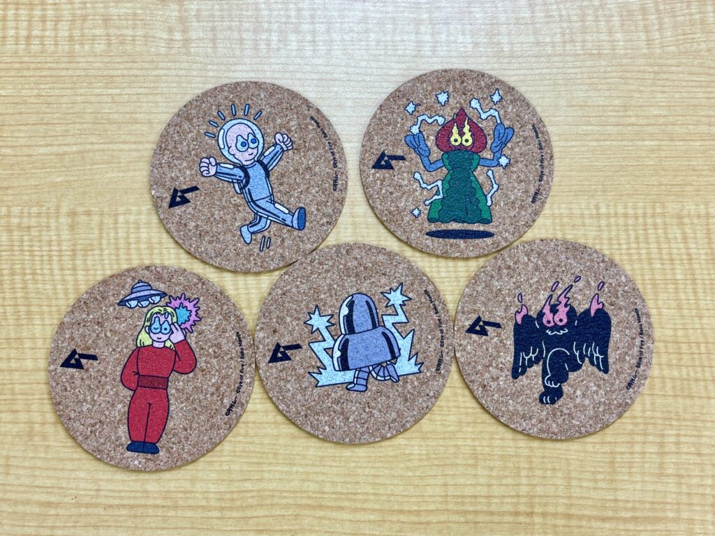 UMA&エイリアンたちがコルクコースターに!「スキンヘッドエイリアン」「フラットウッズ‧ モンスター」「⾦星⼈オーソン」「空⾶ぶモスマン」「メタルロボットエイリアン」の5種から選べます。