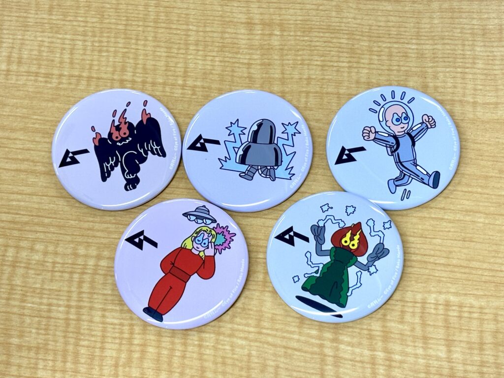 UMA&エイリアンたちが⽸バッジに!「スキンヘッドエイリアン」「フラットウッズ‧ モンスター」「⾦星⼈オーソン」「空⾶ぶモスマン」「メタルロボットエイリアン」の5種から選べます。