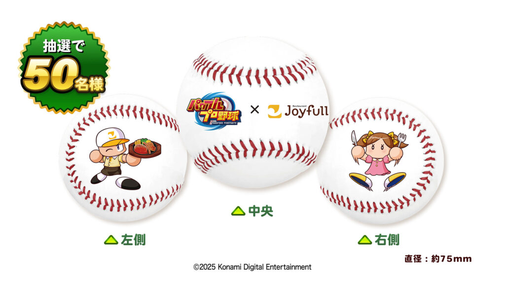 このボールは、ジョイフルと『パワフルプロ野球』シリーズの初コラボレーションでしか手に入らないオリジナルデザイングッズで、特におすすめです。