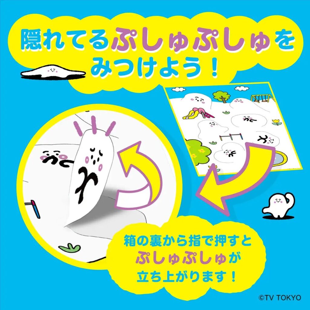 パッケージの裏面はビンゴカードのようになっており、裏から指で押すと、ぷしゅぷしゅたちが立ちあがる仕掛けになっています。