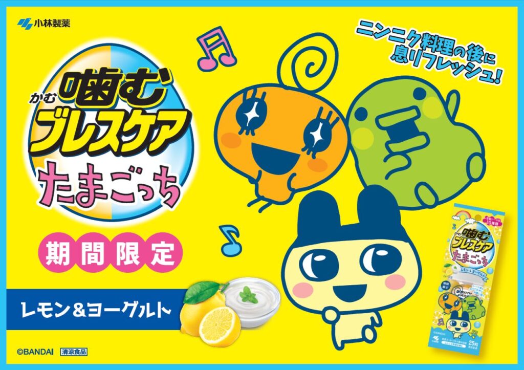 今回たまごっちとコラボした「噛むブレスケア」は、2001 年に発売されたグミタイプの口中清涼食品です。 “息をリフレッシュしたい”、 “水なしですぐ対処したい”という生活者のニーズに着目しており、ニンニクやアルコールなどの気になるお口のニオイを手軽にケアできる製品となっています。
