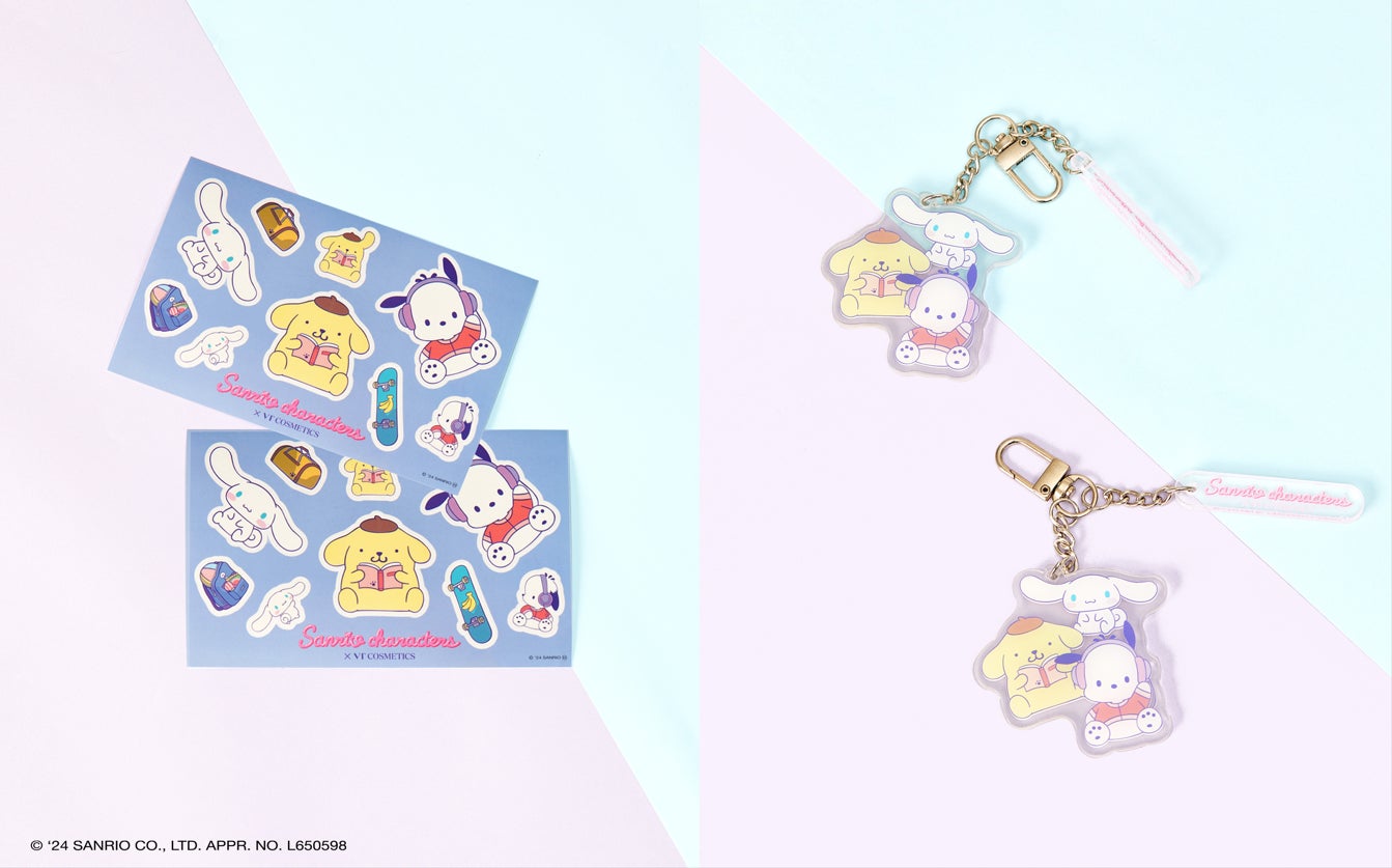 お買い上げ内容によってサンリオキャラクターズのステッカーやキーリングもプレゼント。